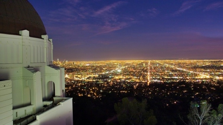 visiting Griffith Observatory to enjoy the city lights, the left dome is the telescope, the middle dome is the planetarium, the right dome is the helioscope for Sun observation. Inside, there is a giant gravity-powered pendulum clock and a powerful Tesla coil.